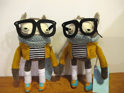 Postavičky Cat Rabbit vznikají v Austráliii. Jsou to figurky s trochu strašidelným kukučem, za který mohou skleněná očička. Jsou šitá z různých textilních materiálů, z filcu a chlupatin. Líbí se mi jejich ušanky, kabátky, rukavice...zkrátka výbava potřebná pro život v drsných podmínkách. V Austrálii bývají asi tuhé zimy, jinak si neumím vysvětlit, proč autorka šije všechna zvířátka v takovém teplém prádle...