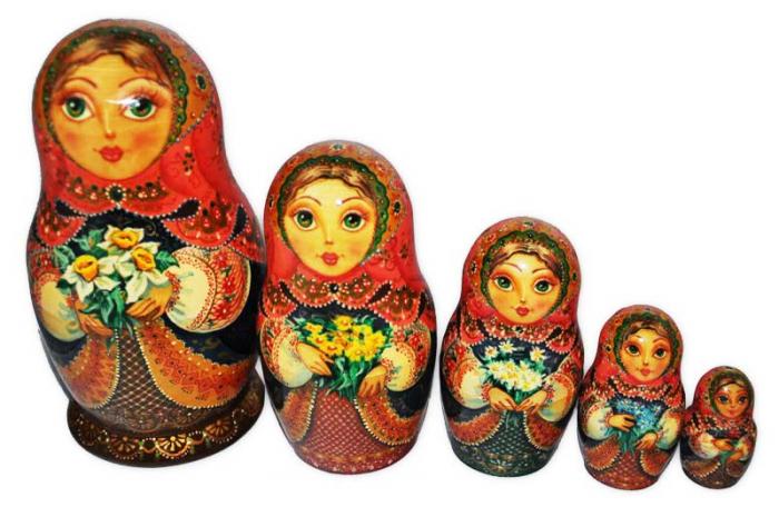 panenky, které se skládají jedna do druhé podle velikostí. Tradičně jich bývá lichý počet, nejméně 5. Panenka je malovaná nejčastěji bez rukou, oblečená v