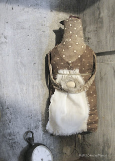 Dnešní ukázka představuje styl Primitive Folk Art, což je americká obdoba lidového primitivismu, která je tam velmi oblíbená. Textil se povrchově upravuje, kombinuje se se dřevem a papírem. Rukopis je snadno rozpoznatelný, hračky spíše dekorativní, s vizáží dluholetého používání. Tato práce je od The Doog Wife of Washington Country.