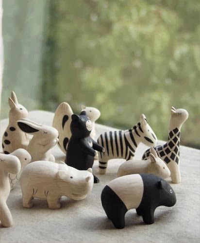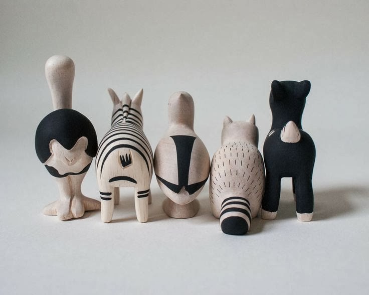 Japonský designér J.Tanaka navrhl kolekci dřevěných zvířátek, která jsou vyřezávaná v ruce z tvrdého a lehkého dřeva Albizia Falcata (velmi rychle rostoucí stromy v Malajsii) a zdobená pouze jednoduchými černými vzory. Kolekce zahrnuje zvířátka na hraní, přívěsky a další drobnosti jak v kontrastní, tak i pastelové barevnosti.
