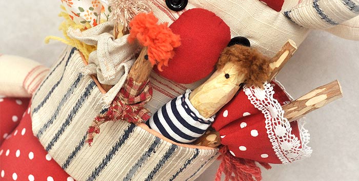 A pak následovala pohádka O zajíci, lišce a kohoutovi. Je bohatě doplněna ruční výšivkou. Zajíček má v domečku gramofon, který po stisknutí píská. A opět nechybí kapsičky (kamna, štokrle, gramofon a houpací síť).