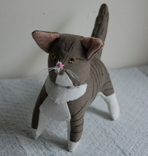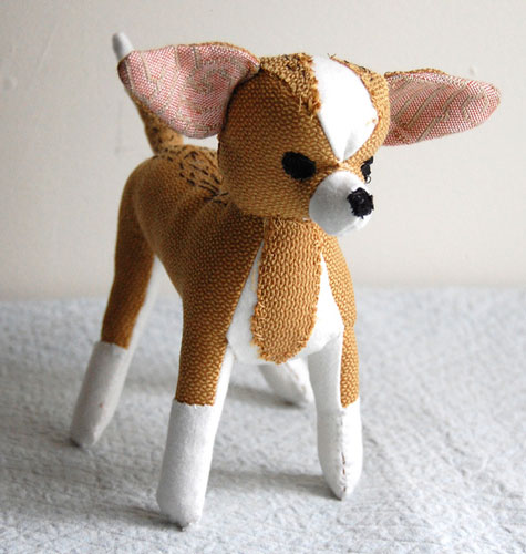 Sian Keegan je americká výtvarnice, která žije v Brooklynu. Své psíky, kočky a králíky šije z volné ruky drobnými viditelnými stehy z recyklovaných a starých textilií. Jde spíše o textilní sošky, ale odrostlé děti by si takového měkkého psíka určitě oblíbily a mohly by si s ním dosyta vyhrát. Další ukázka volné tvorby na pomezí autorských hraček .