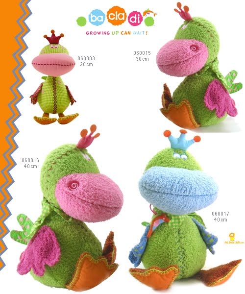 Dutch company Dushi bought in 2008 brand Bacladi and produces more high-quality textiles toys, which have a rich educational activities for baby. They produce 4 types of animals in different variations.