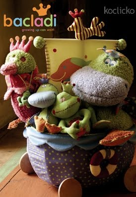 Hračky Bacladi=Dushi mě zaujaly svou bohatou edukativní výbavou i zvlaštní kombinací dekorů, materiálů a barev s převahou zelené a modré. Vpodstatě mají 4 druhy zvířátek, které rozvíjejí do různých typů herních předmětů: kačera, žabáka, slepici a delfína. Vše v jednotném výtvarném stylu, který si snadno spojíte s touto značkou.